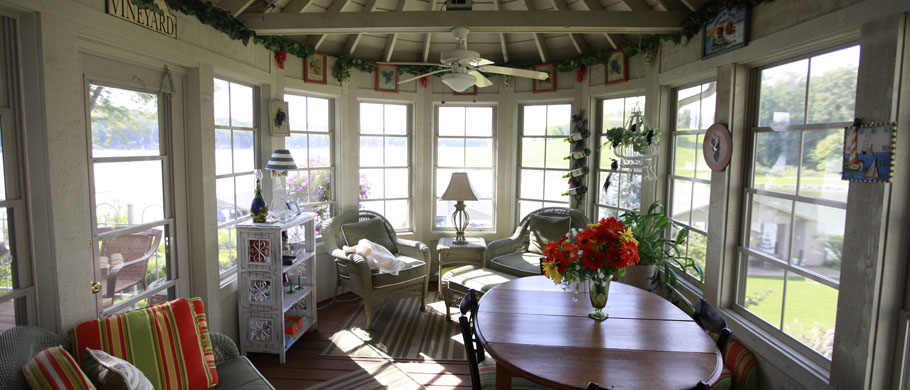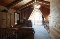 Natural pine ceiling and walls, sliding screen windows