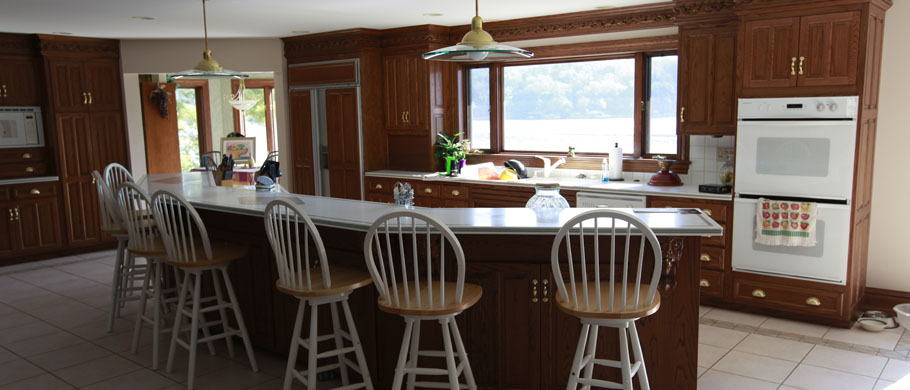 Custom made oak cabnets with Corian tops.